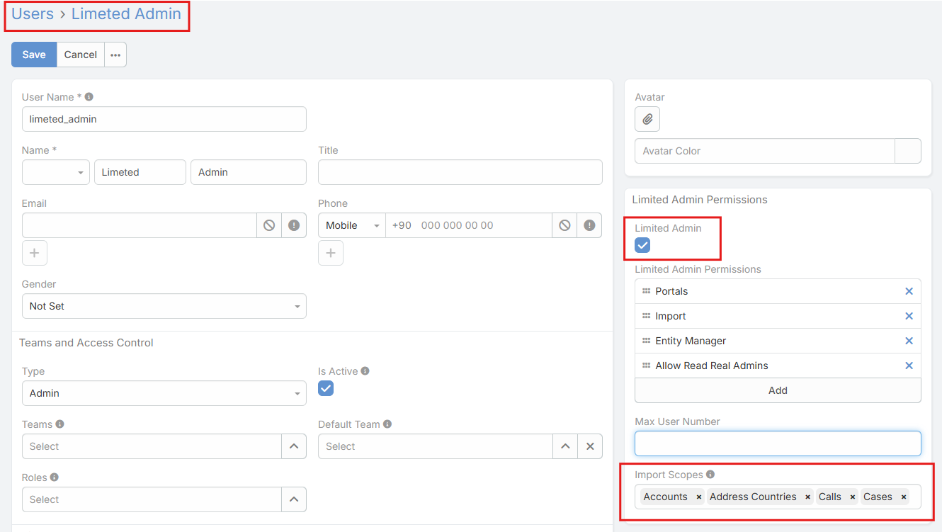 If no scope is selected, the Limited Admin will not be able to perform any import operations.