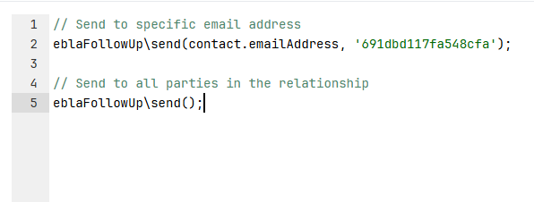 eblaFollowUp\send(contact.emailAddress, 'your-template-id');