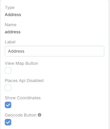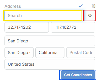 - Get Coordinates Uses the current typed address to fetch coordinates and address data.
