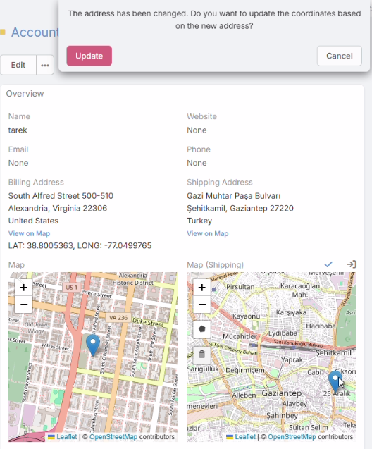 - If street, city, or state changed but the country is still the same, the user can confirm the address update.