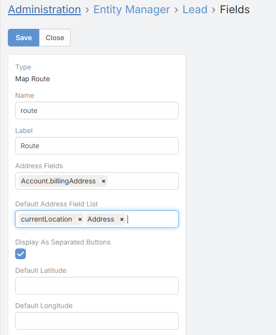 Adds local address fields from the current record to the route automatically. It also supports currentLocation. |