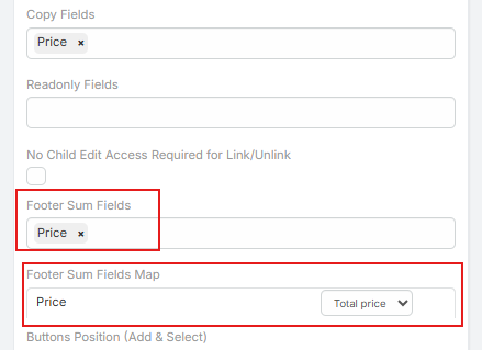 - Footer Sum Fields & Map: Sum numeric fields and map totals to parent entity fields.
