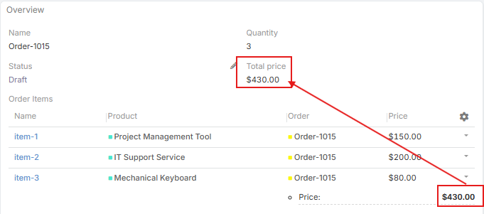 - Map totals to parent entity fields (e.g., Order Item.Total → Order.Total).