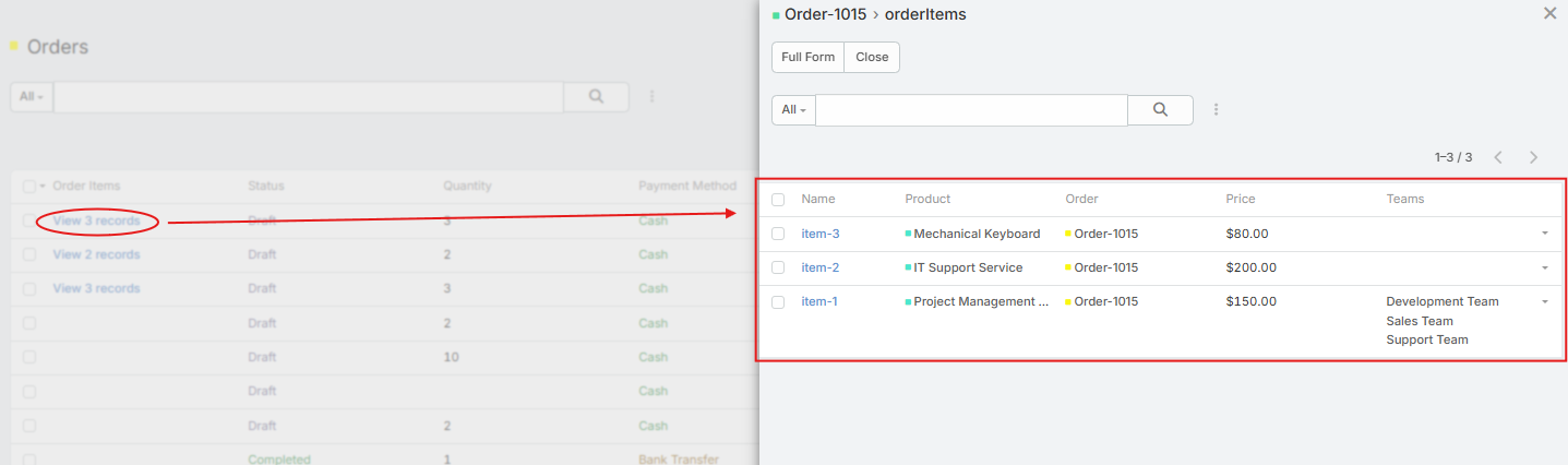 - Modal List: Displays a link that opens the related records in a modal popup list