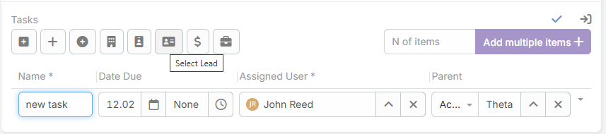 - Multi-Entity Select: When using a Parent Link as a Middle Entity, distinct "Select" buttons appear for each allowed entity type (e.g., Select Account, Select Lead).